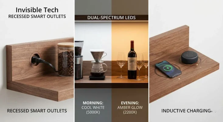 A “Morning Coffee, Evening Wine” station in 2026 is incomplete without Invisible Integration. You shouldn’t see a single cord.