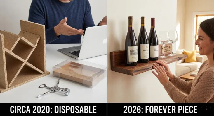 But as we move through 2026, the definition of a “good gift” has undergone a radical transformation. Influenced by the “Slow Decor” movement and a collective rejection of “Fast Furniture,” American homeowners are prioritizing authenticity, longevity, and emotional resonance. The new gold standard for the modern home? The Handcrafted Wooden Wine Bar Shelf. Here is why this artisanal piece has become the ultimate housewarming gift for the 2026 lifestyle.